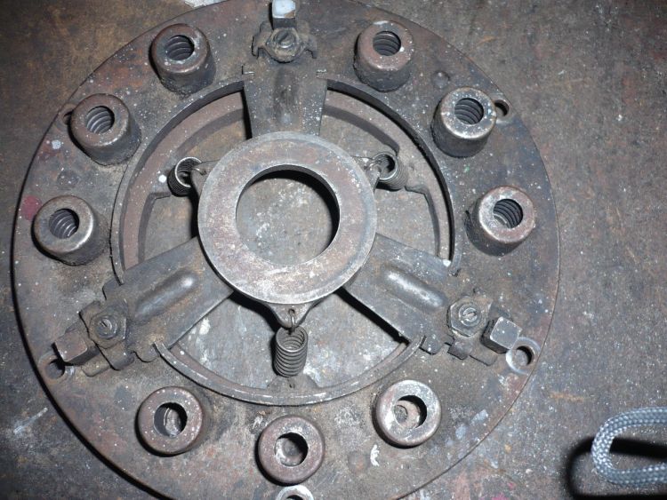 Die 3 Hebel auf der Druckplatte heben diese von der Mitnehmerscheibe bzw. der Schwungscheibe ab.