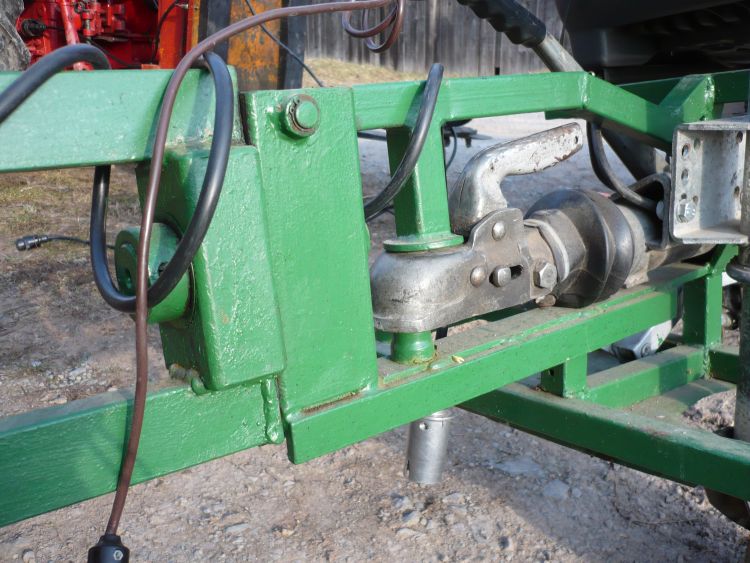 Die Kupplungskugel ist in ein U-Stahl 30/60 520 lg geschraubt, dieser durch einen Flachstahl verstärkt. Der obere Arm ist um einen 16mm Bolzen drehbar, ist aus Rohr 30/30/3.