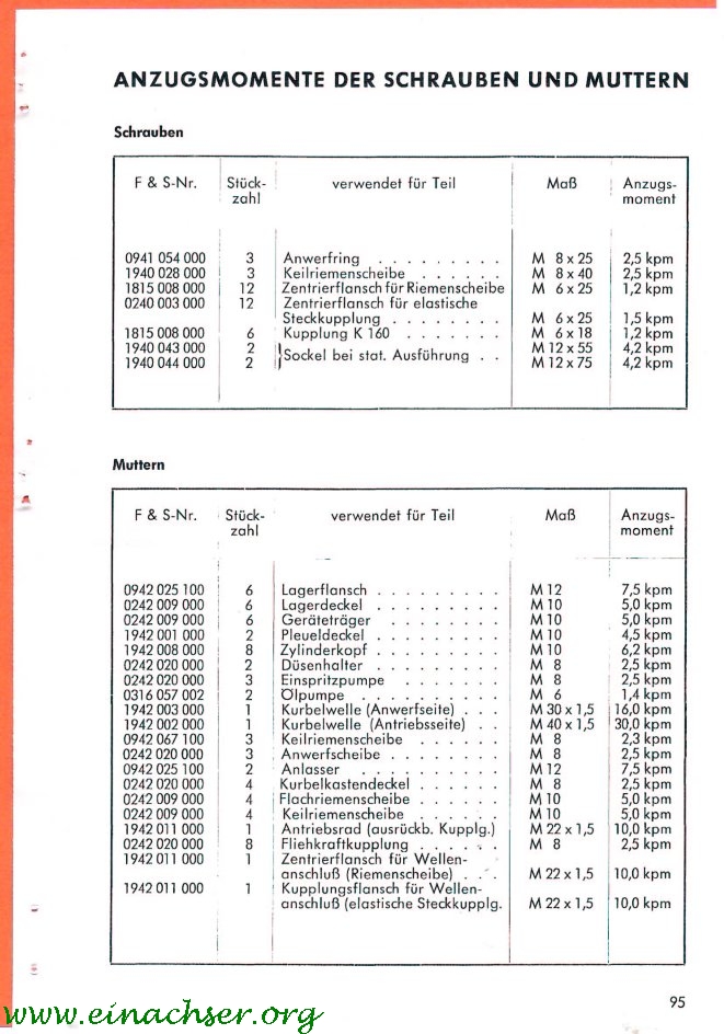 Ich habe zwar Unterlagen zum Regler und auch eine Ersatzteilliste, doch ich hab nirgendwo die Anzugsmomente gefunden.