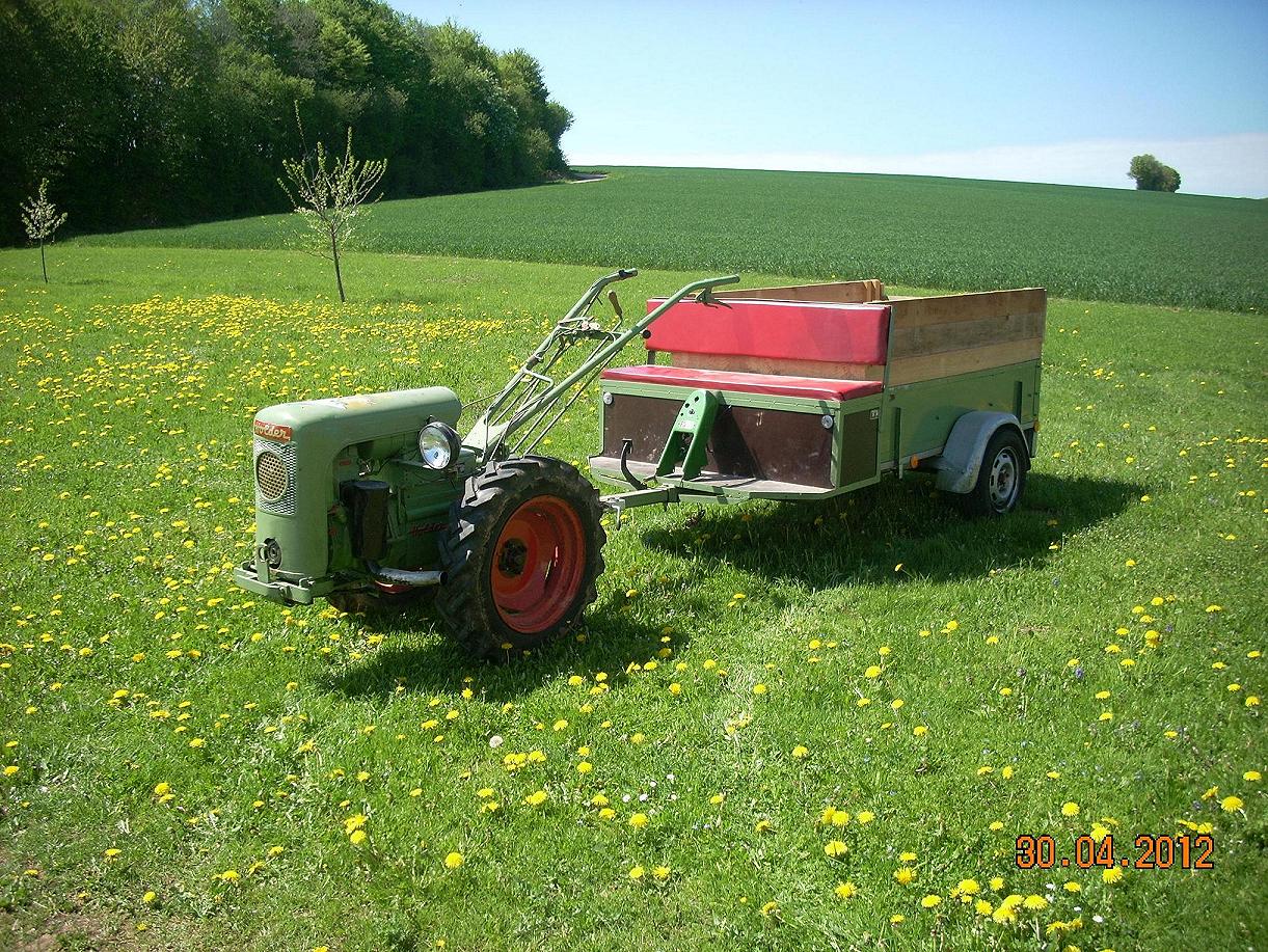 alle Gänge lassen sich einwandfrei schalten. lediglich der Kupplungshebel läßt sich nicht mehr feststellen. Motor 500er Sachs Diesel, Baujahr ca. 1954. Motornr. 1551974