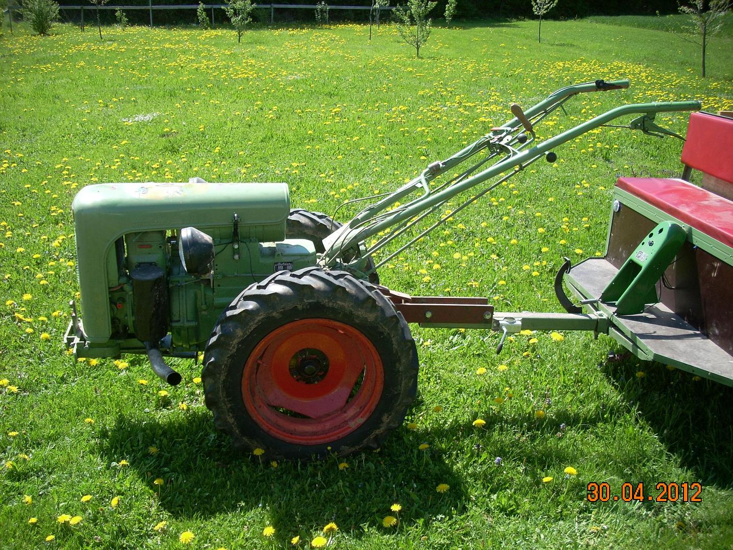 alle Gänge lassen sich einwandfrei schalten. lediglich der Kupplungshebel läßt sich nicht mehr feststellen. Motor 500er Sachs Diesel, Baujahr ca. 1954. Motornr. 1551974